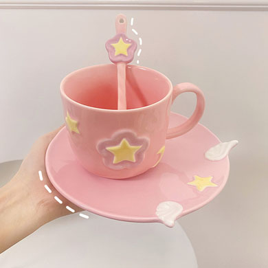 小樱-陶瓷咖啡杯碟套装ins韩国风高颜值精致复古下午茶高级感杯子