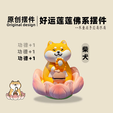 原创好运莲莲佛系系列摆件-柴犬